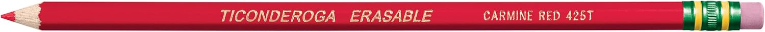 TICONDEROGA Erasable Checking Pencils. Pre-Sharpened with Eraser. Red. Pack of 2 (13901)