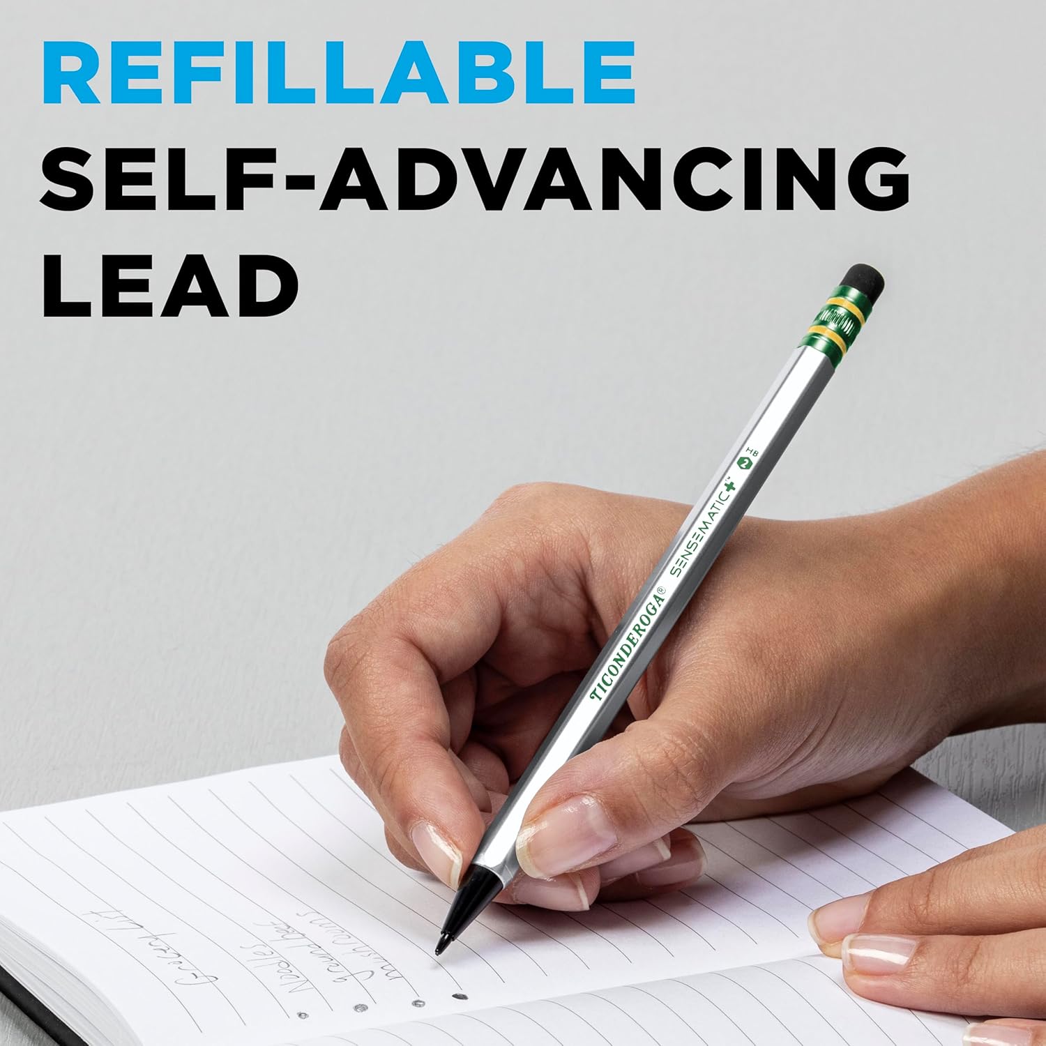 - SLEEK APPEARANCE �C The Ticonderoga Sensematic pencil shows that you are serious about your work with its smooth silver and black barrel and refillable 0.7 mm lead.