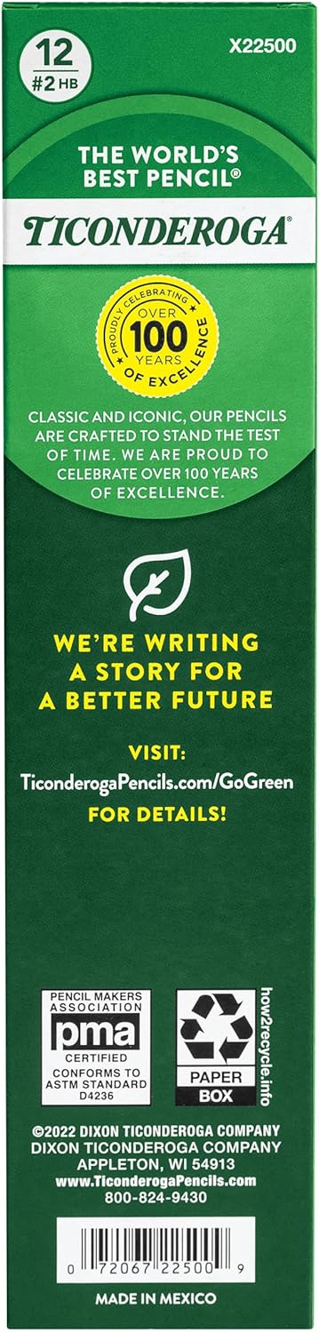 The Tri-conderoga? Pencil puts an end to cramping hands with an ergonomic design that's sure to delight professionals. students and anyone who enjoys writing with a pencil. What makes the Tri-conderoga the world's most comfortable pencil is its unique triangular shape. thicker diameter and a velvety soft-touch finish. This sleek black #2 pencil is made from long-lasting reforested California cedar and offers an exclusive graphite core formula for smooth writing. An extra-large black eraser is high-quality and latex-free to let writers make smudge-free corrections. With bonus sharpener in each 12-count box. PMA Certified non-toxic.