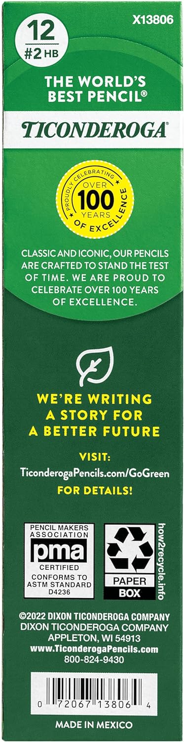 Ticonderoga Wood-Cased Pencils. Pre-Sharpened. 2 HB Soft. Yellow. 12 Count