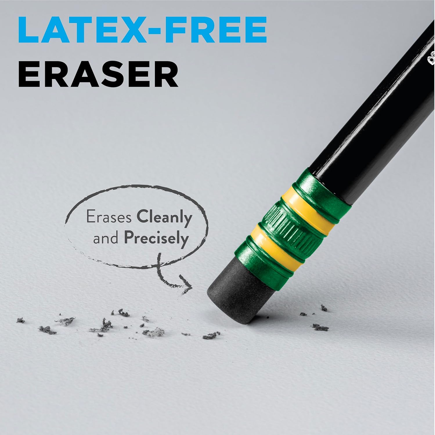 - LATEX-FREE ERASER: Superior. latex-free eraser removes marks completely without smudging and is securely glued in the signature green & gold ferrules
